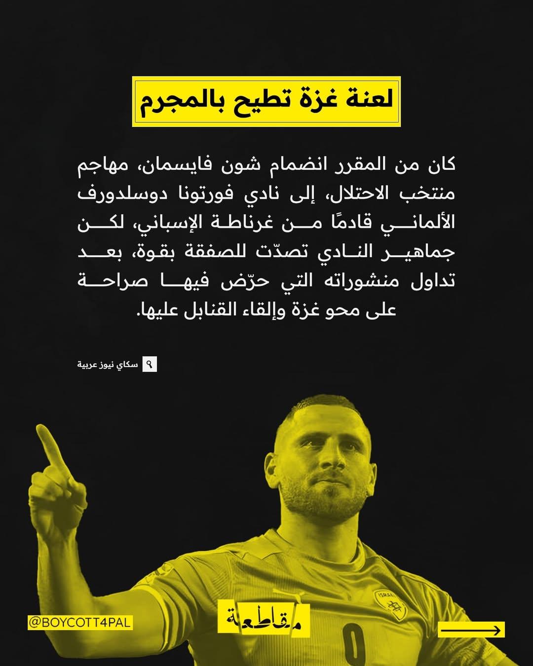سيسقط المحرّضون، طالما غزة هي القضية العالمية المحورية. “شون فايسمان”، الذي دعا لمحو غزة وإلقاء القنابل عليها، ظن أن الملاعب ستتسع لعنصريته… لكن التضامن العالمي أقوى، فجماهير “فورتونا دوسلدورف” حاصرته بعريضة وغضب، حتى أسقطت الصفقة قبل أن تبدأ. كرة القدم، وغيرها من الألعاب، لن يكونوا منصات لدعم مرتكبي الإبادة.