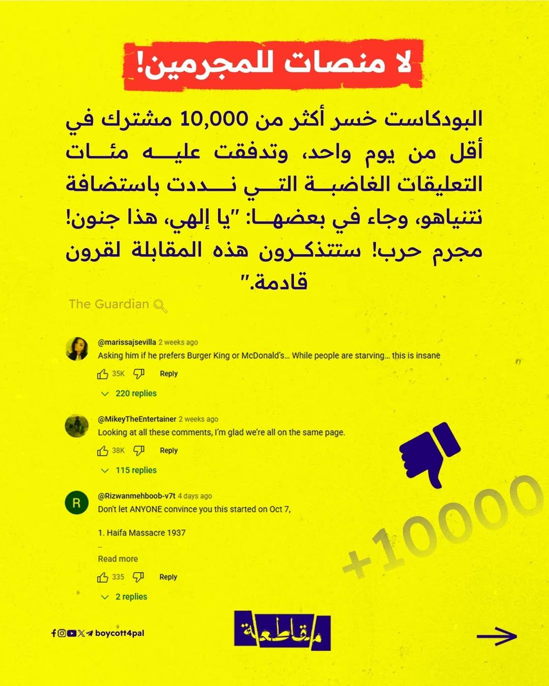 ليس عفويًا ظهور نتنياهو على بودكاست شبابي يُخاطب جمهورًا أمريكيًا محافظًا ومتعاطفًا إلى حد ما مع الشعب الفلسطيني؛ فاختيار منصة مؤثرة في هذا الجيل، والإدلاء باعتراف "عفوي" عن حبه لبرغر كينغ، ليس سوى قناع شعبوي رخيص يغلف مجرم حرب يحاول التسلل إلى وعي جديد بلغة مألوفة وطعام سريع.
