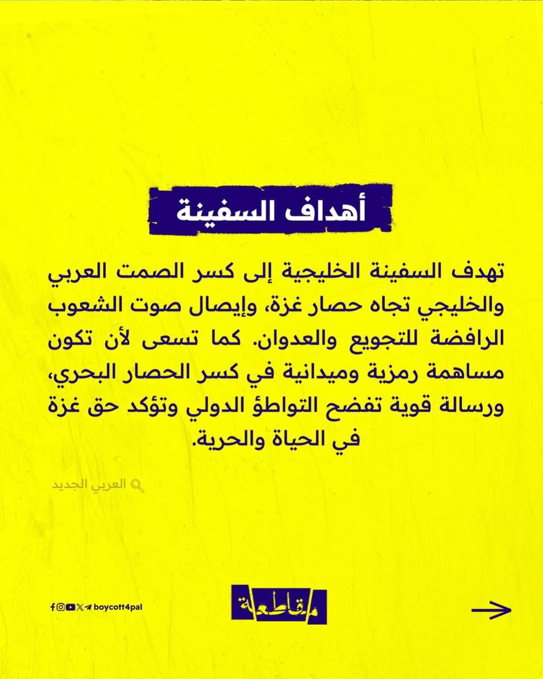 تنطلق هذه المبادرة بمشاركة واسعة من نشطاء ومناصرين من مختلف دول الخليج، حاملين معهم رسالة إنسانية رمزية وموقفًا سياسيًا أخلاقيًا، يضع العالم أمام مسؤولياته. فمن الخليج إلى غزة، تُبحر السفينة ومعها الأمل، مؤكدة أن كل ميناء حر هو نقطة انطلاق نحو كسر القيد، وأن كل موجة حرة تحمل معها وعدًا بالحرية.