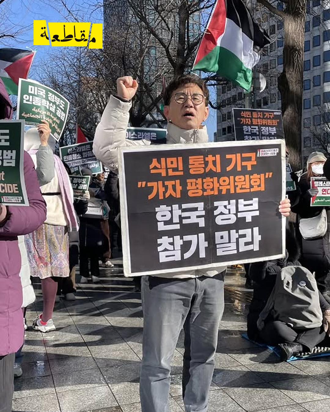 شهدت مدن عدة في كوريا الجنوبية مسيرات واحتجاجات شعبية حاشدة ضد خطة “مجلس السلام في غزة” التي اقترحها الرئيس الأمريكي السابق دونالد ترامب، وسط رفض شعبي واسع لمشاركة حكومة لي جاي ميونغ في هذه الهيئة. ويعتبر ناشطون وحقوقيون أن “مجلس السلام” ليس إلا هيئة استعمارية تهدف إلى إدارة غزة بالقوى الأجنبية ونزع سلاح المقاومة الفلسطينية، فيما يشبه سلطة الحاكم العام الاستعماري في عهد اليابان. وأكد المحتجون أن المشاركة في هذه الهيئة تعني دعم الاحتلال الاستعماري لفلسطين والمشاركة في سياسات الإبادة الجماعية التي تُمارس ضد الشعب الفلسطيني. ورفع المشاركون في المسيرات شعارات منددة بالخطة، مؤكدين أن نتنياهو يسعى للانضمام إليها، وأن الحكومة الكورية الجنوبية واصلت تعزيز التعاون العسكري والاقتصادي مع "إسرائيل"، بما في ذلك دعم خطط أمنية وأسلحة واقتصاد وأوساط أكاديمية، رغم المعارضة الشعبية. وجدد حزب السلام والتقدم الكوري الجنوبي رفضه القاطع لـ “مجلس السلام في غزة”، مؤكدًا أن أي مشاركة حكومية في هذه الهيئة الاستعمارية لن تمر دون اعتراض شعبي وسياسي. وتأتي هذه الاحتجاجات في إطار حركة عالمية للتضامن مع الشعب الفلسطيني ورفض الهيئات التي تسعى لفرض السيطرة الأجنبية على أراضيه.