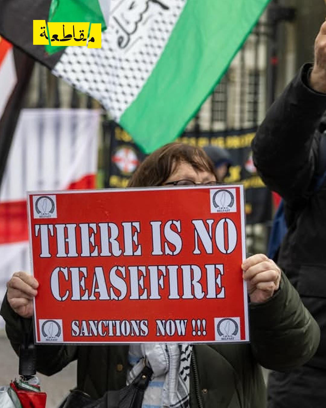 خرج عشرات النشطاء المتضامنين مع فلسطين من حركة المقاطعة (BDS) في مدينة بلفاست، أيرلندا الشمالية في مسيرة احتجاجية، للمطالبة بوقف جرائم الاحتلال الإسرائيلي المستمرة ضد الشعب الفلسطيني في قطاع غزة. وأكد المحتجون أن الانتهاكات لم تتوقف رغم دخول "اتفاق وقف إطلاق النار" في غزة حيّز التنفيذ في 10 تشرين الأول/ أكتوبر الماضي 2026، مشيرين إلى استمرار قصف مناطق مأهولة بالسكان وإيقاع مزيد من الشهداء والجرحى من المدنيين، بما في ذلك الأطفال والنساء.