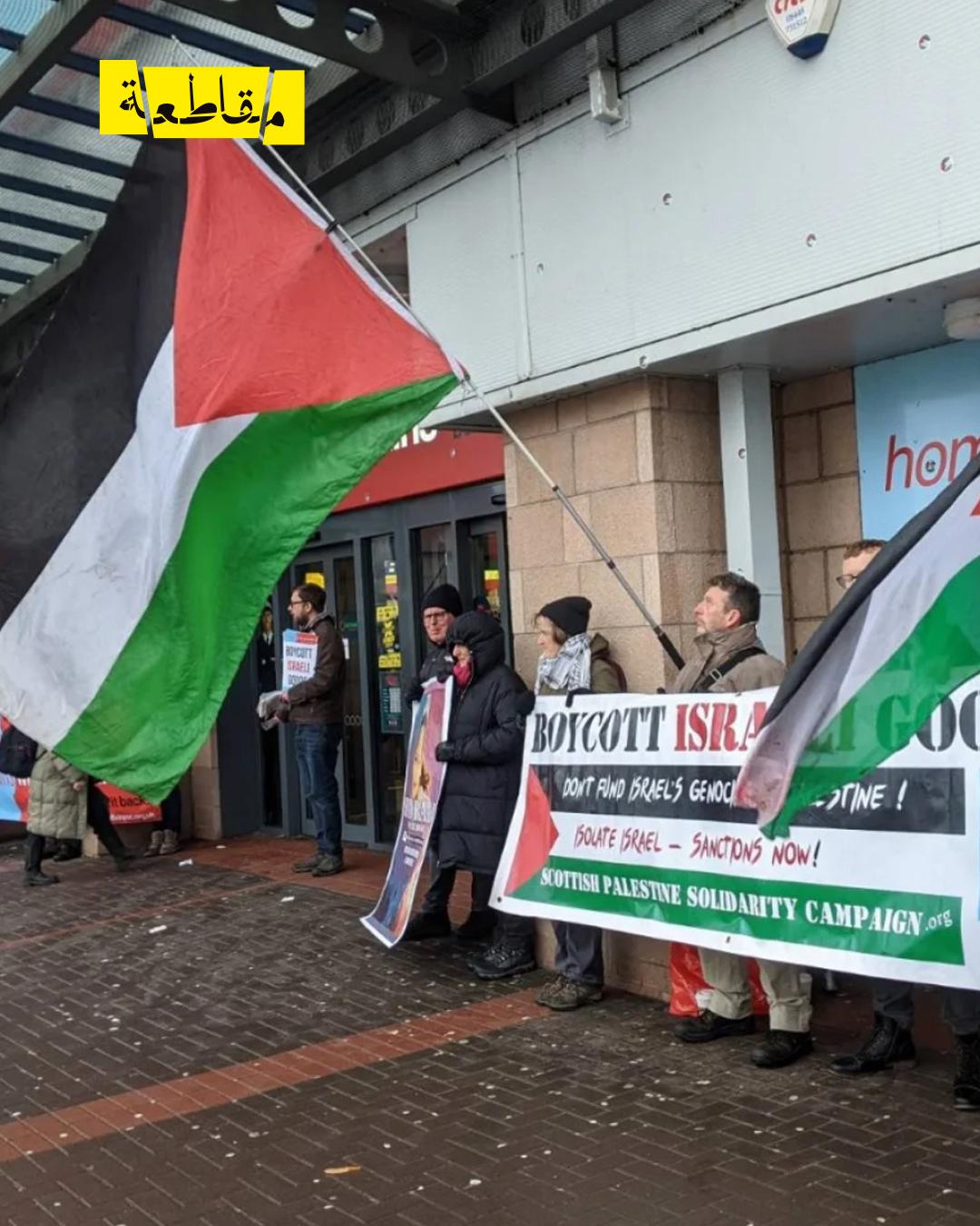 "أوقفوا بيع المنتجات الإسرائيلية" احتجاج أمام متجرين لـ “بارغينز” بإسكتلندا