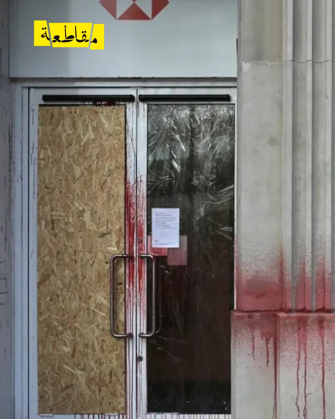 استهدف نشطاء من مجموعة "The After Shock” ثلاثة فروع لبنك HSBC في منطقة فينسبري بارك بلندن- بريطانيا، في إطار احتجاج على استثمارات البنك في شركة الأسلحة الإسرائيلية "إلبيت سيستيمز". التي تُعد واحدة من أكبر مصنّعي المعدات العسكرية المستخدمة من قبل الجيش الصهيوني في حرب الإبادة على غزة.